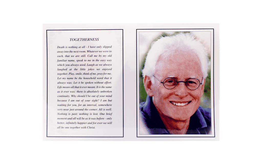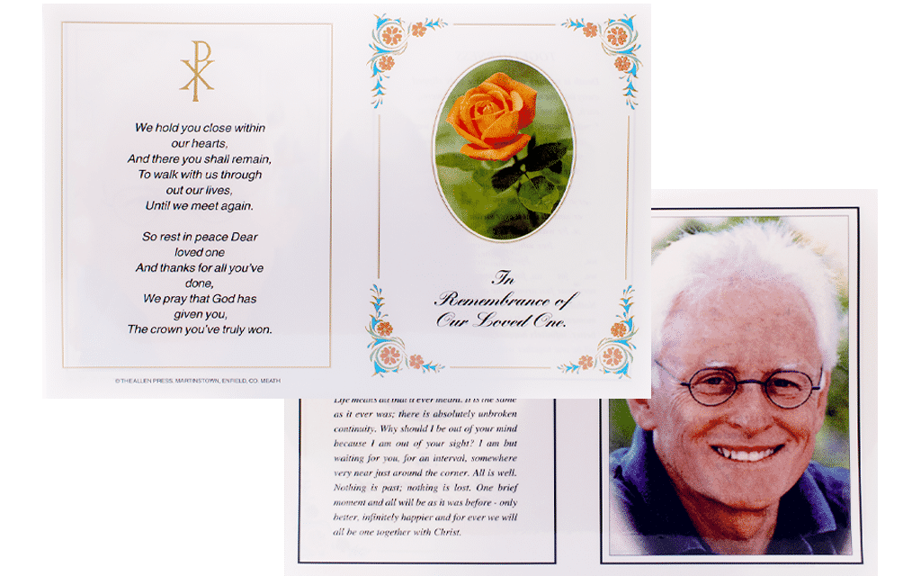 One of Ireland’s oldest family run printing businesses, we are over 67 years providing Memorial Cards, Memorial Bookmarkers, Memorial Thank You Cards and Religious Gifts that help us remember our loved ones.